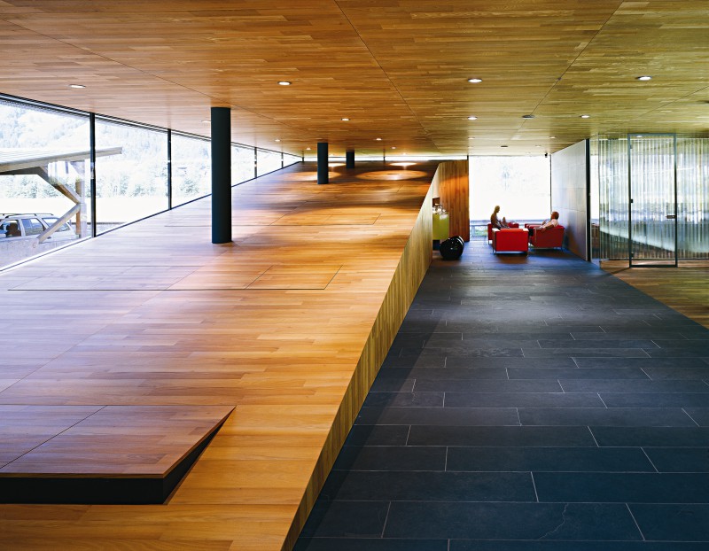 Beim Innenausbau dieses Projektes wurde mit viel Glas, Altholz-Eiche und roher Zirbe ein heller, zweckmäßiger und wohliger Arbeitsplatz geschaffen. Die Bürotüren wurden als Rahmenstocktüren mit flächenbündigem Türblatt und integrierten Glasteilen ausgeführt. Der Bürotrakt besteht aus einem Empfangsbereich, Büroräumen, einem Großraumbüro, Sitzungszimmer und einer Betriebskantine.