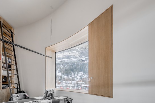 In dem massiven, als Freiform konzipierten Baukörper der Talstation fügen sich die filigran wirkenden, innen wie außen flächenbündig in die Gebäudehülle eingesetzten Holzfenster perfekt ein. In ihren Details aufwendig gestaltet, bestechen diese durch ihre im Kontext einer Liftstation in hochalpinen Regionen ungewohnt hohe Präzision der Ausführungsqualität. Dank einer ausgeklügelten Konstruktion und damit einhergehender Funktionalität erscheinen die gebogenen Fenster sehr zart, wobei auch die in dieser Höhenlage extremen witterungsbedingten Anforderungen Berücksichtigung fanden. Perfekt gestaltet, geplant und ausgeführt gelingt es dadurch, den außergewöhnlichen architektonischen Gesamteindruck des Gebäudes wesentlich zu unterstreichen.