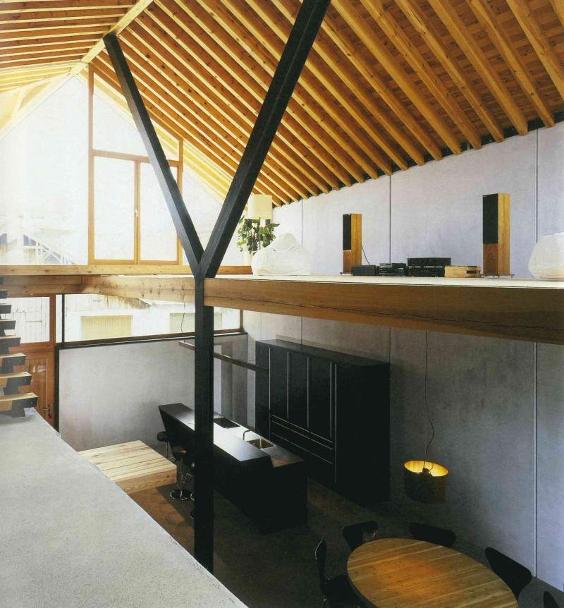 Über drei Ebenen erstreckt sich ein Wohnraum von beachtlicher Dimension. Die Stirnseiten wurden geöffnet, und nach Südosten entstand eine geräumige Terrasse mit Ausblick in die Umgebung. Auf der Galerie in der mittleren Ebene bergen Raumzellen aus schwarzen MDF-Platten die Sanitärräume und das Schlafzimmer. Die desolate Holzstruktur des Altbestandes wurde durch eine neue Konstruktion aus Föhren der Region ersetzt. Alle neuen Interventionen sind ablesbar und gehen eine logische Synthese mit dem Bestand ein. Innerhalb eines engen ökonomischen Korsetts gelang dem jungen Architektenpaar eine vorbildliche und sensible Revitalisierung einer bestehenden Struktur, die einem modernen Lebensstil viel Raum lässt.