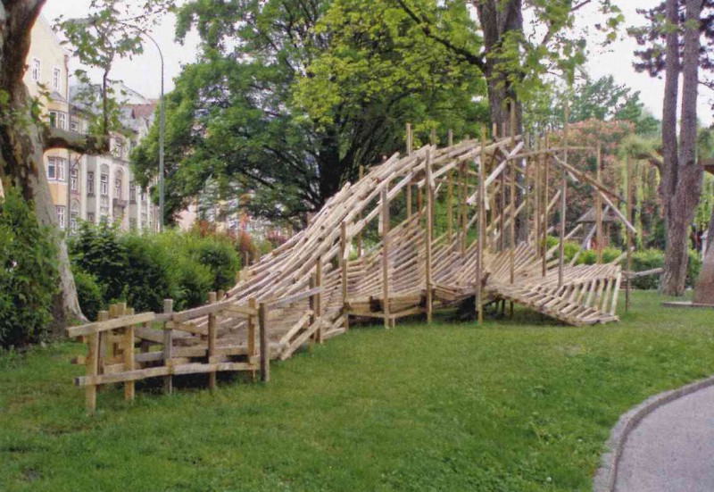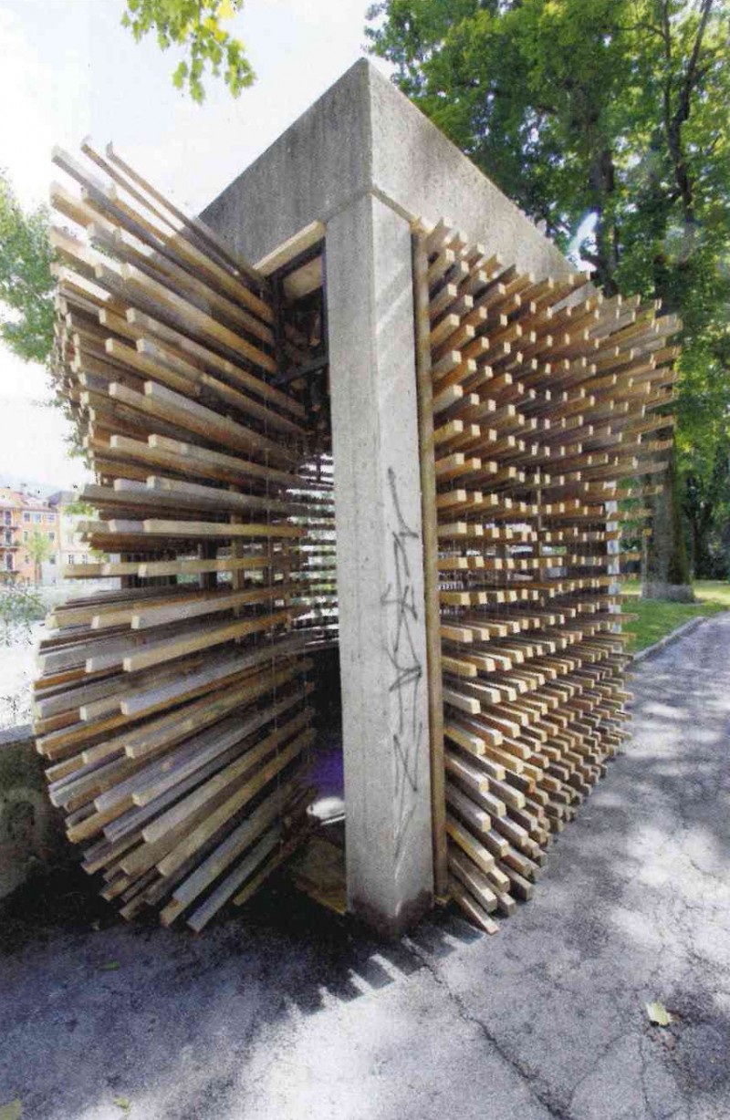 Nach dem Abbau dieser temporären Intervention wurden die insgesamt 50 m3 Fichtenlatten, ganz im Sinne einer abfallfreien Holzverwendung, einem neuen Projekt zugeführt. Dies ist generell bezeichnend für das Bauen mit Holz. Das Institut für Experimentelle Architektur der Architekturfakultät Innsbruck lobte einen Wettbewerb aus, der zum Ziel hatte, aus dem bestehenden Baumaterial neue Kleinarchitekturen zu schaffen. Aus Anlass der Architekturtage 2010 wurden diese Objekte wieder im Waltherpark gezeigt.