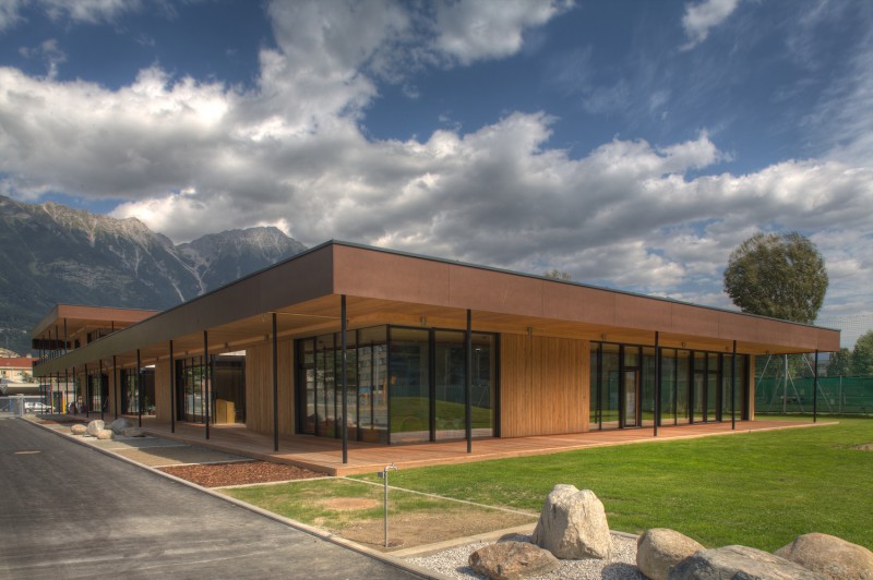 Das Thema Nachhaltigkeit wurde besonders dahingehend geplant, berücksichtigt und umgesetzt, dass das Gebäude ein Niedrigstenergiehaus in Massivholzbauweise ist, bei dem sämtliche Innenoberflächen aus Weißtanne gefertigt wurden und alle Holzteile (sowohl Konstruktion als auch Verkleidungen) unbehandelt blieben. Lediglich der Holzfußboden (Akazie gedämpft) wurde geölt, um im laufenden Betrieb einen pflegeleichten Boden zu gewährleisten.