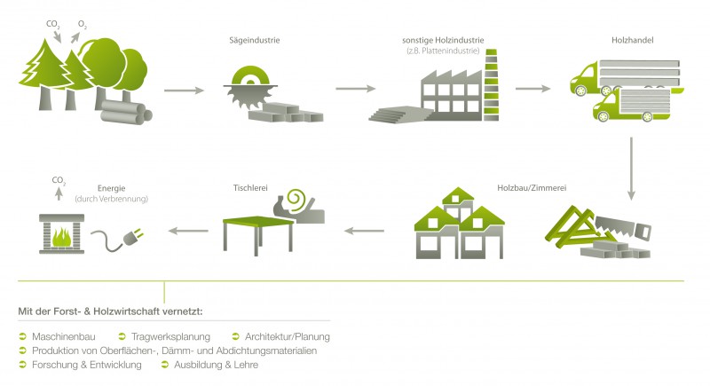 Holz verbindet. Einzelne Branchen nutzen die Synergien und werden zu einem großen Miteinander.