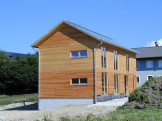 Bei diesem Objekt handelt es sich um eine Aufstockung. Vorgefertigte Wandelemente wurden auf den bestehenden Holzriegelbau aufgesetzt. Niedrigenergiegebäude bei dem die Energie für Heizung und Warmwasser mittels ...
