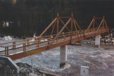 Diese Fuß- und Radwegbrücke (NKL I) mit einer Spannweite von 40 m (b=2,50 m) ist als Bogenbrücke mit abgehängter Fahrbahn ausgeführt. Die Bogenträger sind aus Lärchen-Brettschichtholz, die Fahrbahnplatte besteht ...
