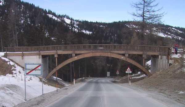 Mit einer Spannweite von 21 m führt die Holzbrücke am Katschberg über die B99. Diese Pistenüberführung mit 5 m Breite sorgt für unbeschwertes Schivergnügen im Wintersportgebiet Katschberg.