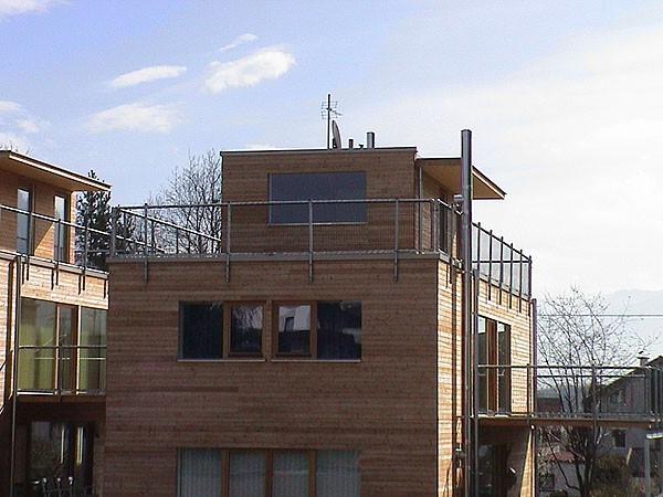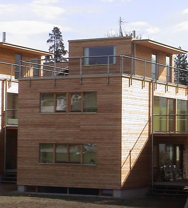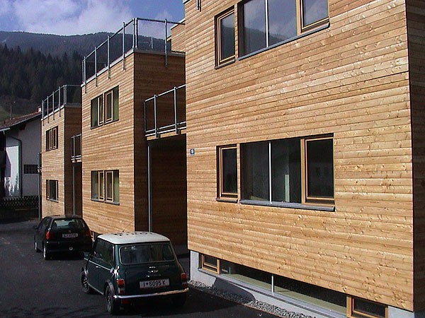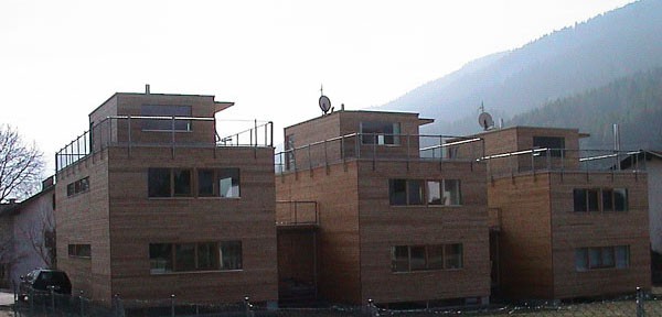 Die Reihenhausanlage in Götzens besteht aus drei Wohneinheiten. Das Kellergeschoß wurde in Massivbauweise ausgeführt. Innovative Details und der Einsatz diverser Holzarten und Holzwerkstoffe lassen individuelle Wohnräume mit Holzatmosphäre entstehen.