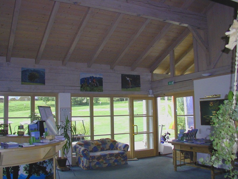 Traditionelle Zimmermannstechnik präsentiert das Vereinshaus des Golfclubs in Goldegg. Ein Sichtdachstuhl überspannt den weiten, hellen Aufenthaltsraum und sorgt für entspannte Atmosphäre bei Golfsportlern und Golfliebhabern. Das Dach ist mit Holzschindeln gedeckt.