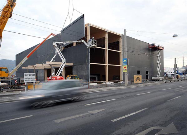 Für das Kulturhauptstadtjahr 2009 in Linz musste in kürzester Zeit eine Theaterhalle errichtet werden. Größte Herausforderungen: Die Halle musste über mindestens zwei getrennte Bühnen verfügen, um auch Proben während der Aufführungen zu ermöglichen das erforderte auch eine akustische Trennung. Energieeffizientes Heizen musste möglich sein. Und die Halle sollte demontierbar ausgeführt werden, um nach Ende des Kulturhauptstadtjahres eine weitere Nutzung als Lagerhalle im Hafenbereich zu ermöglichen.