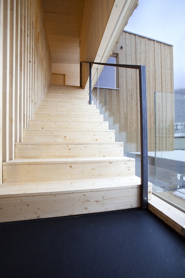 Das Apartmenthaus Haus Refugio Laudegg steht am Fuße der Burg Laudegg in Ladis. Die neu errichteten Apartments und Zimmer liegen ca. 30 m neben dem familiären Gastbetrieb und bilden gemeinsam mit der Burg, dem Gasthof, dem See und der imposanten Bergwelt ein einheitliches Ensemble. In enger Zusammenarbeit mit dem Denkmalamt und dem Naturschutz entwickelte das Architektenteam Ventira Architekten eine für diesen Ort stimmige Komposition. Die neuen Beherbergungsbauten sollen an diese traditionellen Stallungen am Fuße der Burg erinnern. Deshalb die feingliedrige Kleinteiligkeit der Baukörper und die ortstypischen Materialien. Grosse, punktuelle Fenster sollen den Blick auf das Wesentliche lenken und so die Natur der Tiroler Berge in die Stube holen. Das Erdgeschoss in Massivbauweise mit Putz die Obergeschosse in Holzbauweise. Es wurde stark darauf geachtet heimische, natürliche Materialien einzusetzen. Die Dachlandschaft wurde ganz bewusst als sanfte Steildächer, welche begrünt sind, ausgeführt. Dadurch entsteht ein stimmiges Bild im Umfeld der denkmalgeschützten Burg Laudegg.