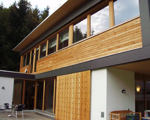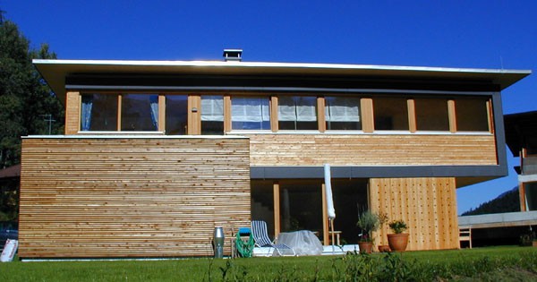 Eine klare architektonische Formensprache prägt das Niedrigenergiegebäude in Weer. Eine kontrollierte Wohnraumlüftung sorgt ganzjährig für ein gesundes und angenehmes Raumklima.