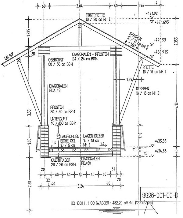 überhöhtes Scheinfachwerk, Spannweite 67,70 m
