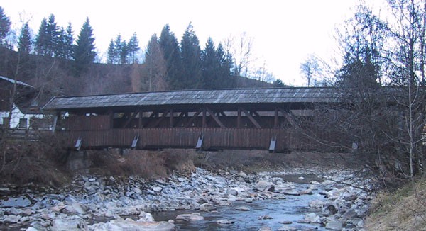 Die Bahnhofsbrücke und die konstruktiv gleiche Wolfbachbrücke (Pülzlsteg) über die Salzach wurden als überdachte Fachwerkbrücken ausgeführt. Sie entstanden 1988 unter der Bauherrschaft der Gemeinde Taxenbach. Das einfeldrige Objekt überspannt die Salzach mit 32,10 Metern und wurde an Stelle der ehemaligen Landesstraßenbrücke, welche wegen Baufälligkeit abgetragen werden musste, erbaut. Brückenklasse: Fußgänger-Radwegbrücke Klasse I