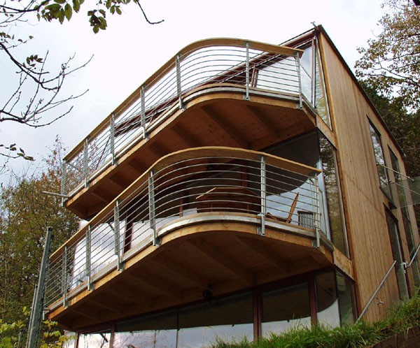Ein Spiel aus Glas und Holz zeichnet den Wohnturm in Innsbruck aus. Birkensperrholzplatten verleihen den Innenräumen eine Wohnatmosphäre der besonderen Art.