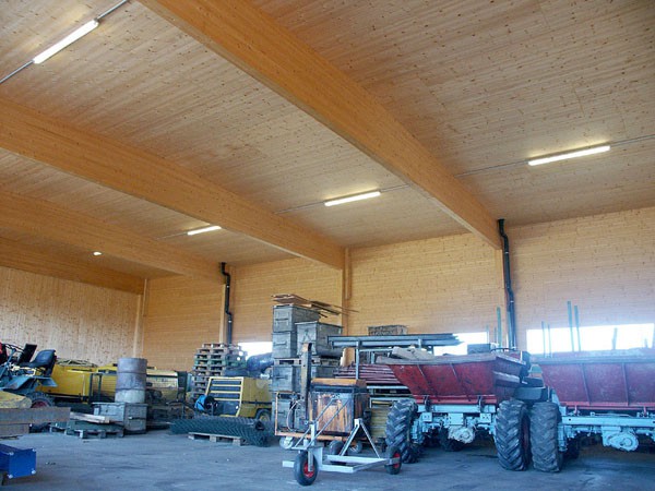 Mischbauweise, Holzleimbinder mit tragenden Vollholzelementen für Dach und Wandkonstruktionen