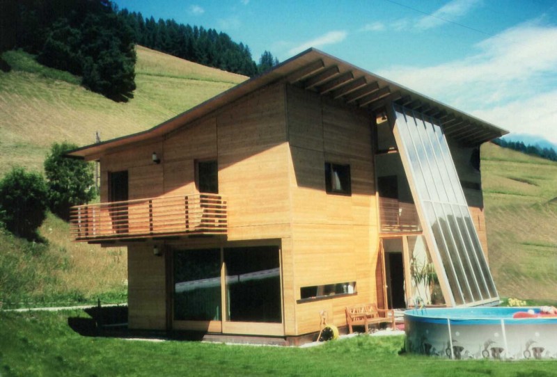 Das Objekt ist eine Kombination aus Skelettbauweise, Tafelbau und Holzmassivelementen (Brettschichtholz). Der Energiebedarf für dieses Niedrigenergiehaus wird von einem über zwei Geschosse reichenden Kachelofen zu einem Großteil abgedeckt. Ergänzend stehen noch eine Ölheizung und eine Solaranlage zur Verfügung.