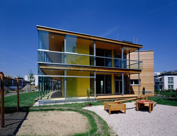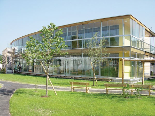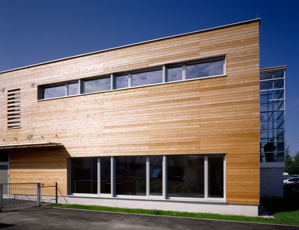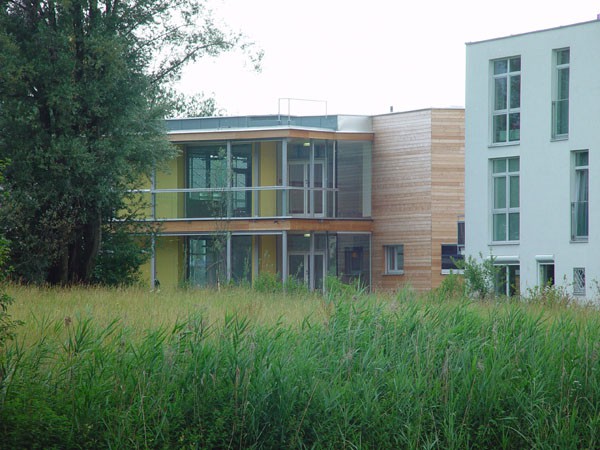 Die Bauweise in Holz erfolgte aus umweltbewussten und biologischen Erwägungen sowie der statischen Notwendigkeit einer Gewichtsreduktion (schwebende Tiefgründung).