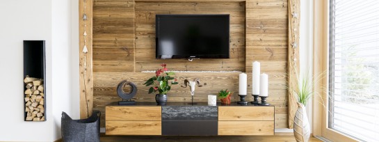 Wohnzimmer in Eiche und Altholz