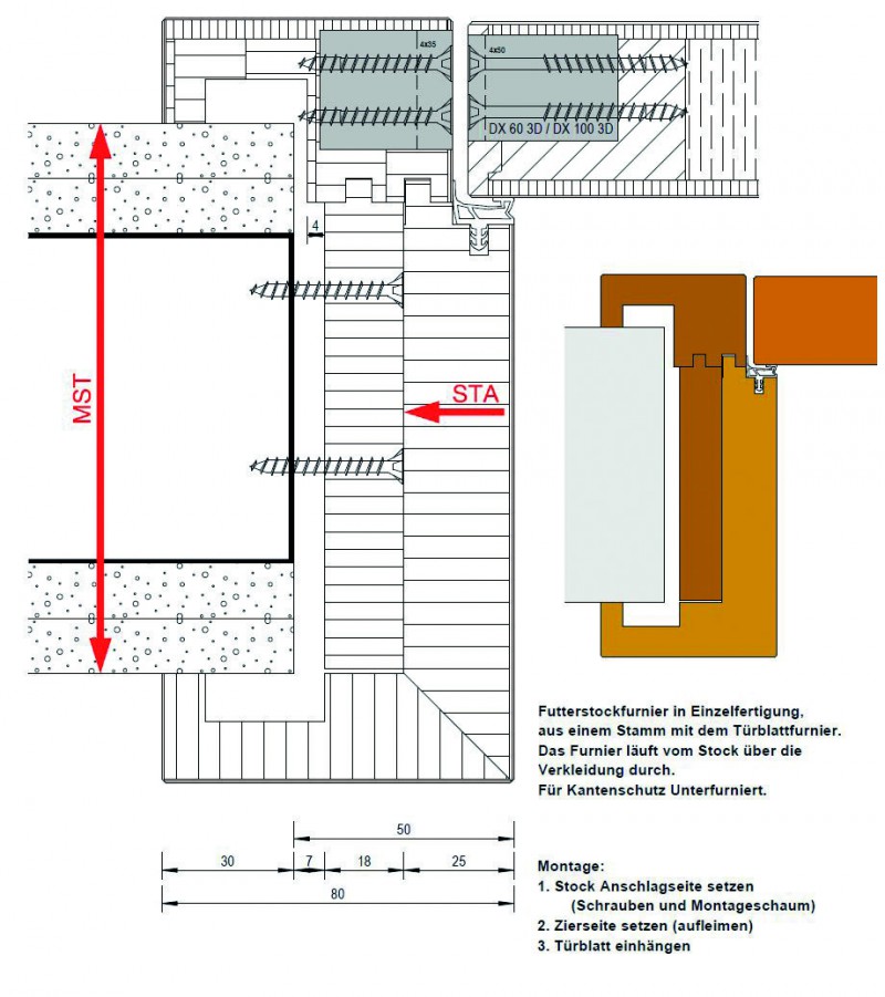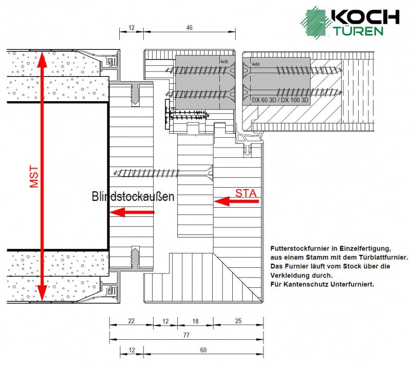 Nach einem Jahr Entwicklungszeit unserer F&E Abteilung und auch einigen Rückschlägen präsentieren wir nun unsere Gehrungsstocksysteme. Wir wollen mit dieser Konstruktion der Liebe zum Detail von Bauherren und Architekten gerecht werden. Durch die Bauweise des Stockquerschnitts auf Gehrung, wird keine Zierverkleidung benötigt. Der Stock ist mit der Verkleidung ein Block, bei dem das Furnier in einem Teil durchläuft. Die aufrecht durchgehenden Stockteile verstärken die geradlinige Optik.
