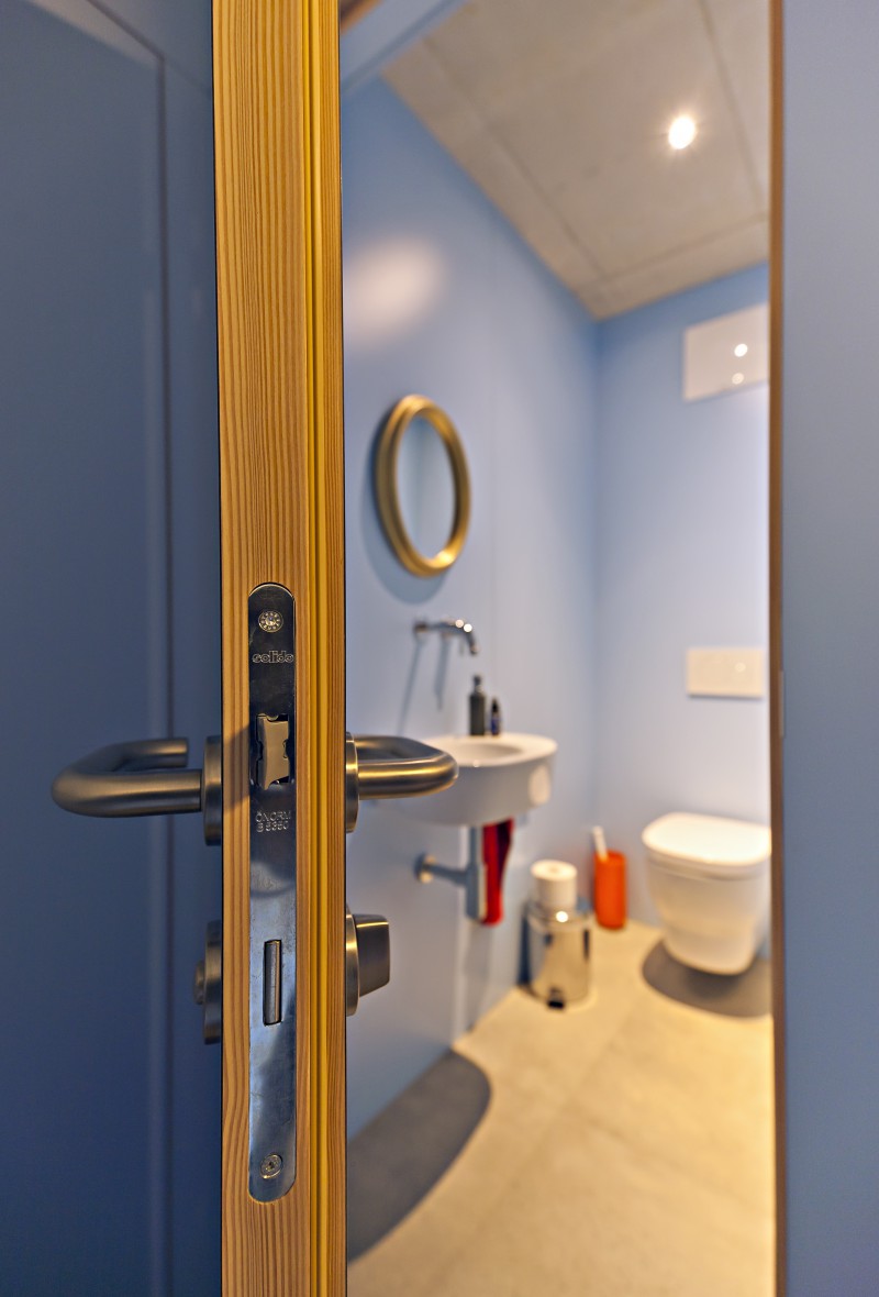 Himmelblau ausgeführt. Alle Wände, Türen und Böden sind aus