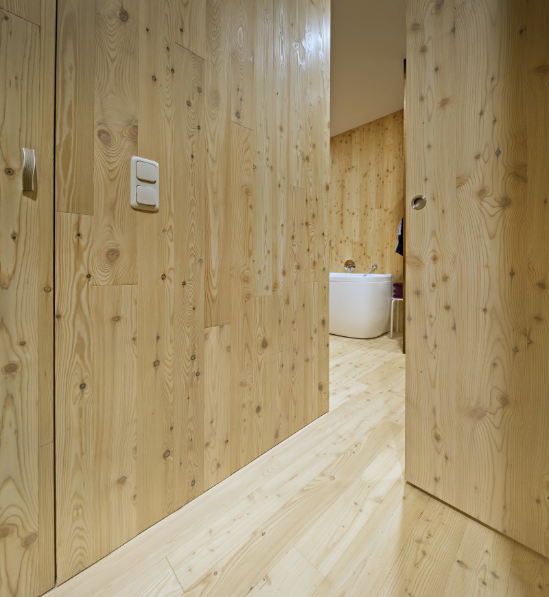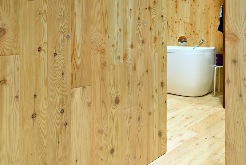Lärche. Durch den flächenbündigen Einbau verschwinden die