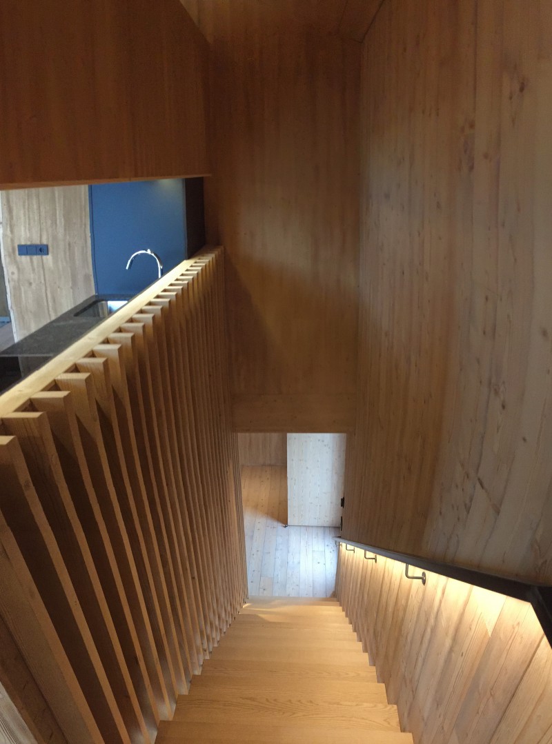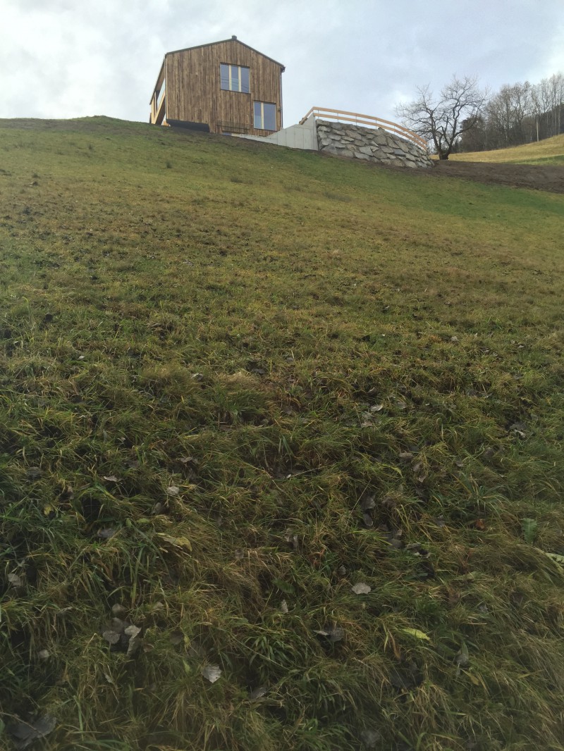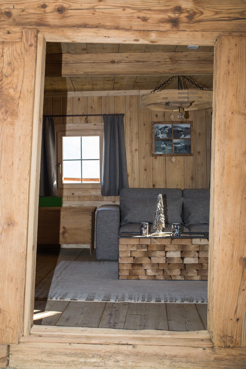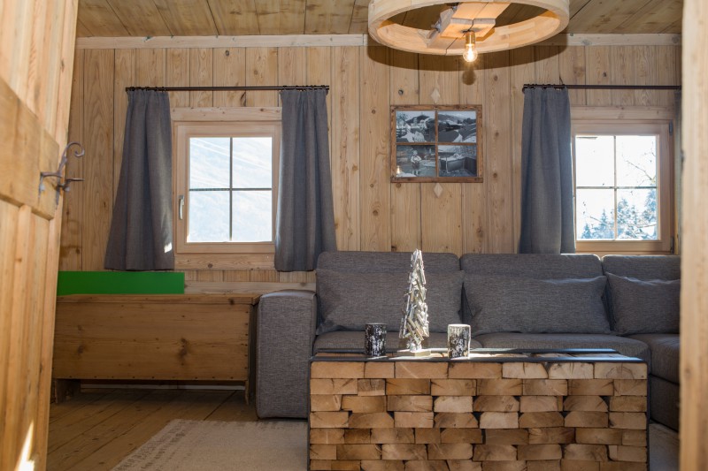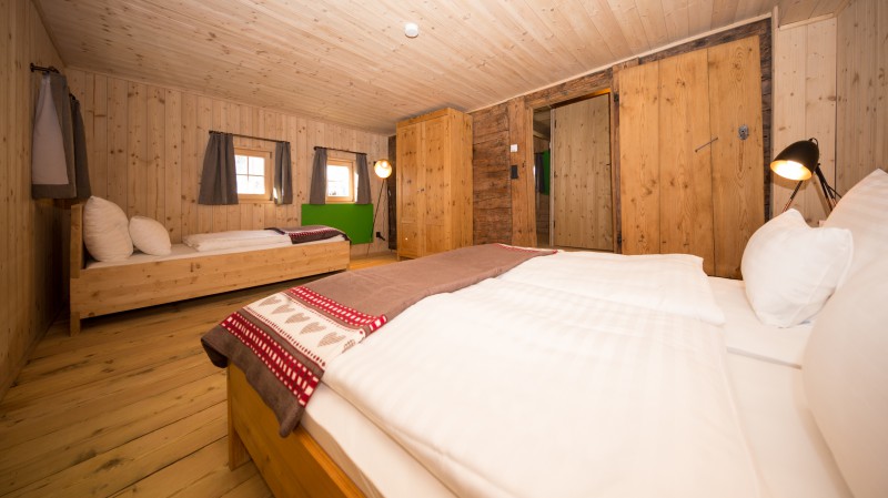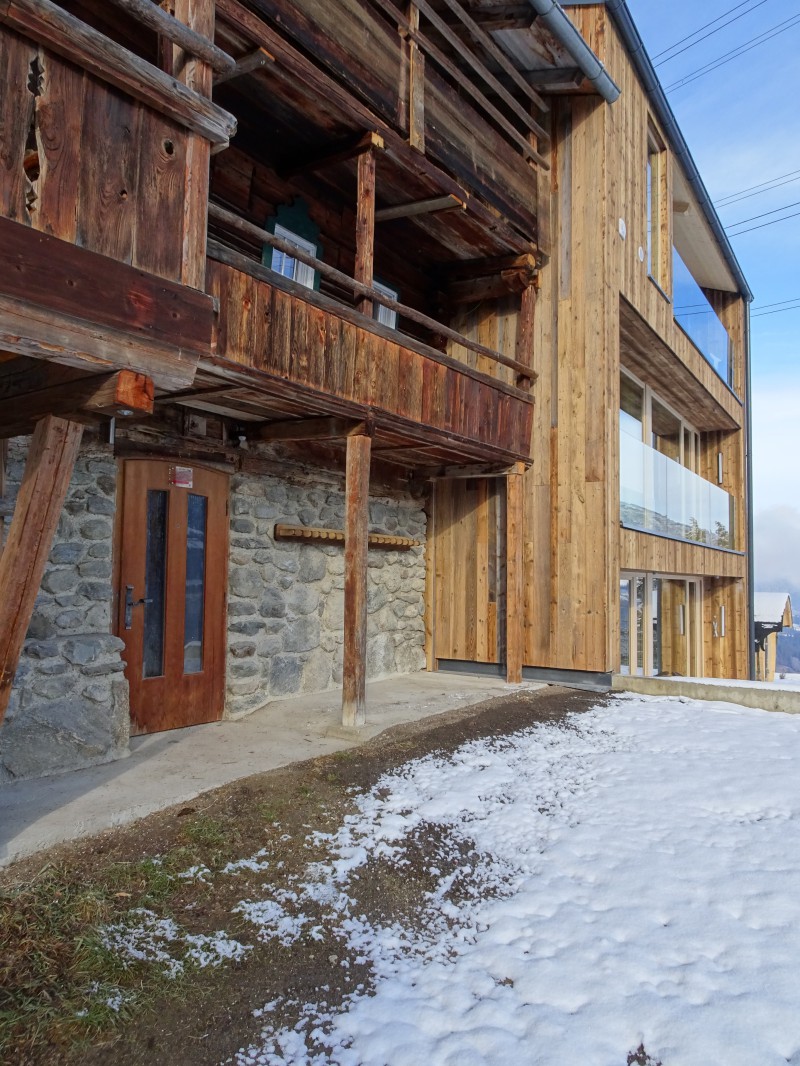 Der Bestand - ein über 200 Jahre alter Bauernhof wurde generalsaniert und in der Kubatur des ehemaligen Tennen zwei Ferienappartements dazu gebaut. Der Altbestand (Appartment "Ursprung") wurde dabei großteils im Originalzustand erhalten und bietet Platz für bis zu acht Personen. Es erstreckt sich über zwei Geschoße. Im Erdgeschoß befinden sich das Wohnzimmer sowie die Küche und ein Badezimmer, im Obergeschoß die Schlafzimmer und ein weiteres Bad. Die Badezimmer sowie die Küche wurden neu eingerichtet bzw. neu ausgestattet. Für die Küche wurde 3S-Fichte gedämpft, gebürstet, roh als Material verwendet. Alle Oberflächen wurden belassen, Wand- und Decken wurden lediglich sandgestrahlt, die Böden geschliffen. Der Zubau umfasst zwei Appartements, welche beide in Massivholzbauweise errichtet wurden. Das Appartement "Stadl" erstreckt sich über ein Geschoß, das Appartement "Tenne" über zwei Geschoße, sie beiten jeweils für vier bzw. sieben Personen Platz. Die Appartements sind jeweils mit Küche, Bädern, Schlafzimmern sowie einer Sauna ausgestattet. Die Küche wurde aus MDF lackiert und die Badmöbel aus Fichte gebürstet hergestellt. Die Betten sowie Garderobenschränke wurden aus Fichte massiv hergestellt und mit 3S-Fichte gebürstet verkleidet. Die Wand- und Deckenoberflächen wurden mit einer Holzschalung - Fichte geölt vertäfelt. Der Couchtisch, welcher sowohl im Bestand, als auch im Umbau Verwendung findet, besteht aus zwei Kufen, die gefertigt aus Schwarzstahl, welche mit aufbereitetem, bauseitigen Altholz gefüllt und verbunden sind. Der Esstisch besteht ebenso aus bauseitigem Altholz, lediglich die Unterkonstruktion, bestehend aus vier verschweißten Flacheisen wude ergänzt. Teile der neuen Fassade wurden aus Brettern des alten Tennen hergestellt. Diese wurden demontiert, bearbeitet, sandgestrahlt und wieder montiert. Teilflächen wurden dieser Optik angepasst, indem neue Fassadenbretter abgeflämmt und gebürstet wurden.