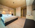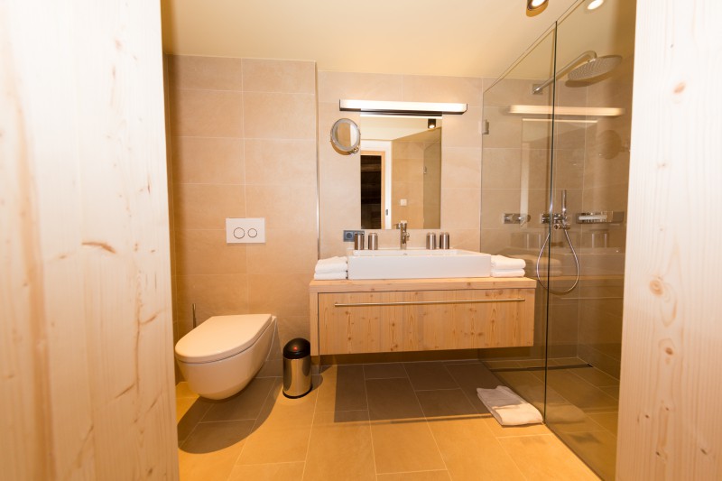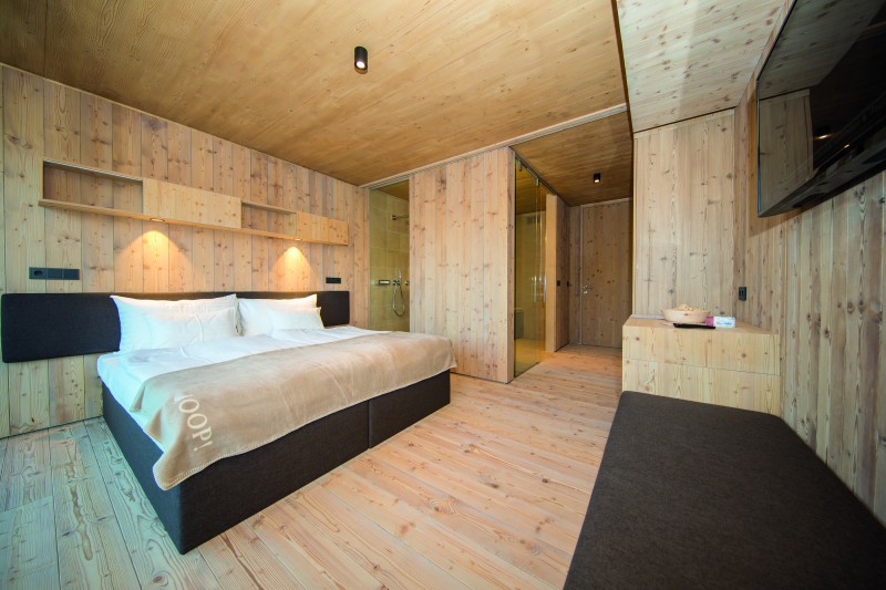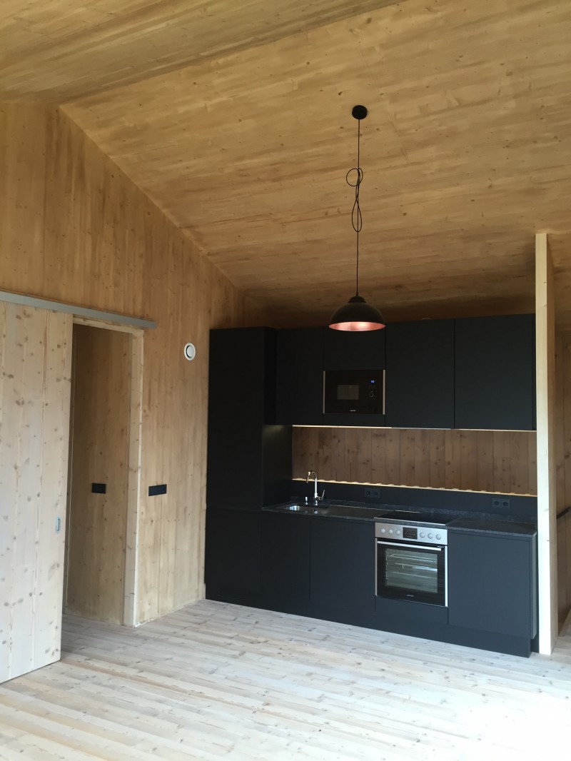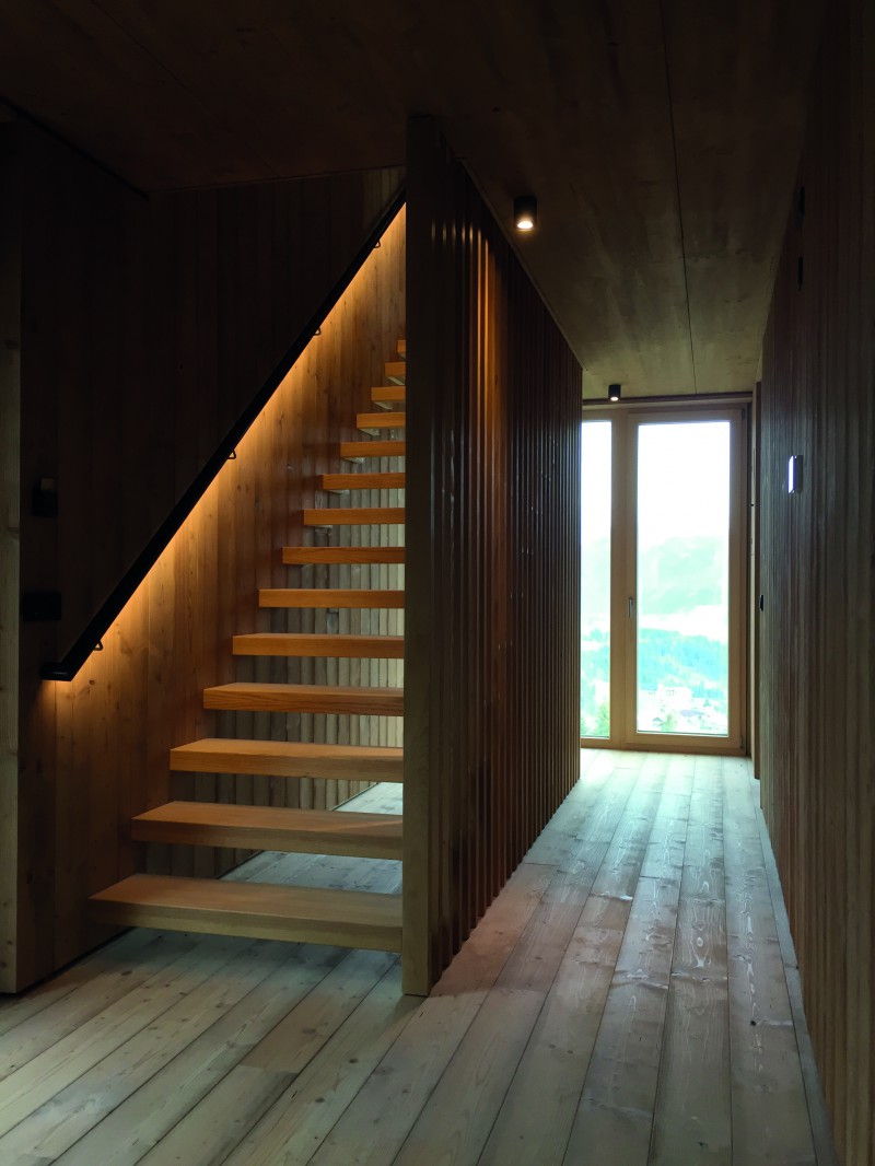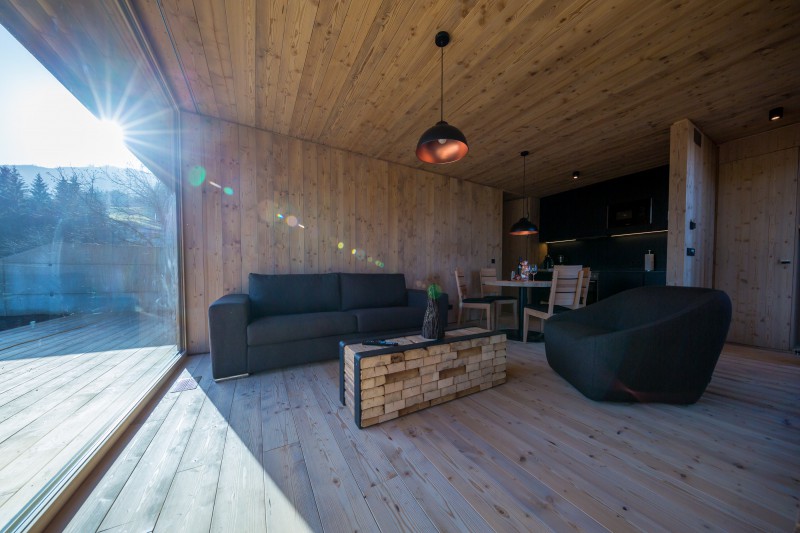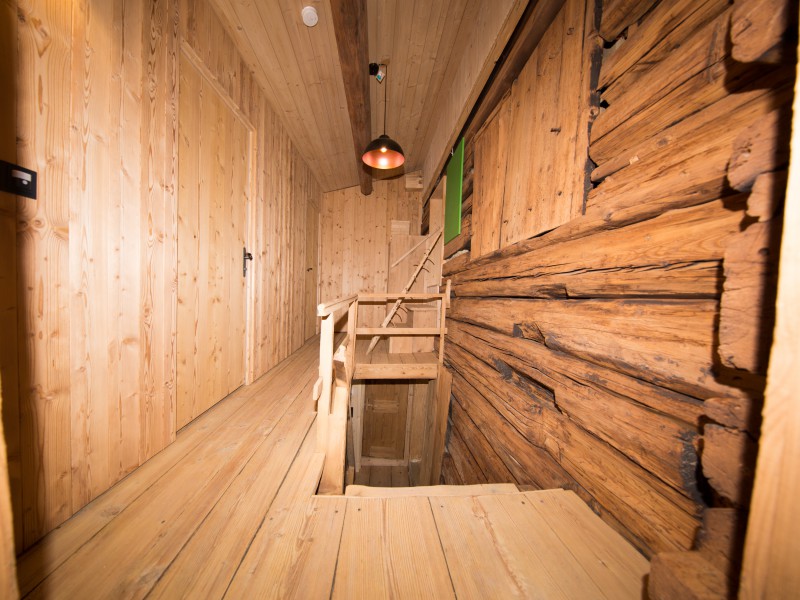 Der Bestand - ein über 200 Jahre alter Bauernhof wurde generalsaniert und in der Kubatur des ehemaligen Tennen zwei Ferienappartements dazu gebaut. Der Altbestand (Appartment "Ursprung") wurde dabei großteils im Originalzustand erhalten und bietet Platz für bis zu acht Personen. Es erstreckt sich über zwei Geschoße. Im Erdgeschoß befinden sich das Wohnzimmer sowie die Küche und ein Badezimmer, im Obergeschoß die Schlafzimmer und ein weiteres Bad. Die Badezimmer sowie die Küche wurden neu eingerichtet bzw. neu ausgestattet. Für die Küche wurde 3S-Fichte gedämpft, gebürstet, roh als Material verwendet. Alle Oberflächen wurden belassen, Wand- und Decken wurden lediglich sandgestrahlt, die Böden geschliffen. Der Zubau umfasst zwei Appartements, welche beide in Massivholzbauweise errichtet wurden. Das Appartement "Stadl" erstreckt sich über ein Geschoß, das Appartement "Tenne" über zwei Geschoße, sie beiten jeweils für vier bzw. sieben Personen Platz. Die Appartements sind jeweils mit Küche, Bädern, Schlafzimmern sowie einer Sauna ausgestattet. Die Küche wurde aus MDF lackiert und die Badmöbel aus Fichte gebürstet hergestellt. Die Betten sowie Garderobenschränke wurden aus Fichte massiv hergestellt und mit 3S-Fichte gebürstet verkleidet. Die Wand- und Deckenoberflächen wurden mit einer Holzschalung - Fichte geölt vertäfelt. Der Couchtisch, welcher sowohl im Bestand, als auch im Umbau Verwendung findet, besteht aus zwei Kufen, die gefertigt aus Schwarzstahl, welche mit aufbereitetem, bauseitigen Altholz gefüllt und verbunden sind. Der Esstisch besteht ebenso aus bauseitigem Altholz, lediglich die Unterkonstruktion, bestehend aus vier verschweißten Flacheisen wude ergänzt. Teile der neuen Fassade wurden aus Brettern des alten Tennen hergestellt. Diese wurden demontiert, bearbeitet, sandgestrahlt und wieder montiert. Teilflächen wurden dieser Optik angepasst, indem neue Fassadenbretter abgeflämmt und gebürstet wurden.