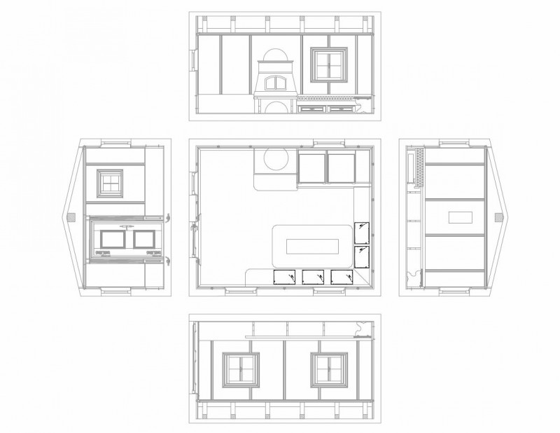 Um- und im Anschluss an den Ofen wurde eine gekehlte Sitzbank, Liege und fortlaufende gekehlte Eckbank eingebaut. Getragen wird die Bank von ausgeschnittenen Wangenfüßen. Unterhalb der Liege sind 2 große Schubladen integriert. Ein origineller Tisch mit Ahornplatte und Schiefersteineinlage im Mittelteil bietet Platz für viele Gäste. Auch die Stühle wurden passend aus Zirbenholz gefertigt. Lodenauflagen für Bank und Stühle wie auch Polsterung und Kissen bringen wohlige Gemütlichkeit in den Raum. Die dimmbare Beleuchtung auf dem Gesimse der Täfelung bringt abwechslungsreiche Stimmung in das Gartenhaus. Ein Raum, beheizbar und technisch gut ausgestattet der eine ganzjährige Nutzung ermöglicht.