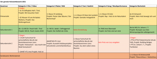 „Was macht Holz für euch/dich genial?“- so lautete die Wettbewerbsfrage die die SchülerInnen mit Projektarbeiten innerhalb von 5 Kategorien (Video, Bild, Text, Musikperformance, Werkstück) beim Genialen HOLZ-Wettbewerb beantworten konnten.