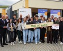 (v. l.): Rüdiger Lex (Geschäftsführer von proHolz Tirol), LHStv. Josef Geisler, Stefan Walch (Direktor der HTL Imst), Werner Mungenast und Markus Lentsch (zweite Reihe), sowie LIM Simon Kathrein und proHolz Tirol Vorstandsvorsitzender Manfred Saurer (3. und 2. v.r.) gratulierten der Klasse 4e der Sport-Mittelschule Imst zum Tagessieg. Das Preisgeld in Höhe von € 300,- findet auf der gemeinsamen Klassenfahrt sicher gute Verwendung.