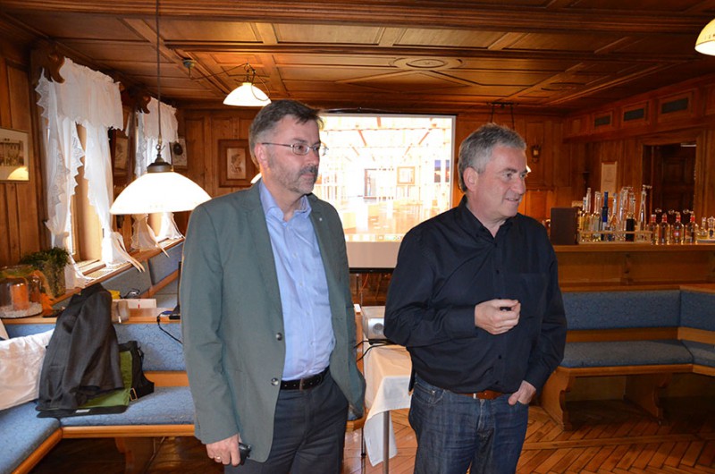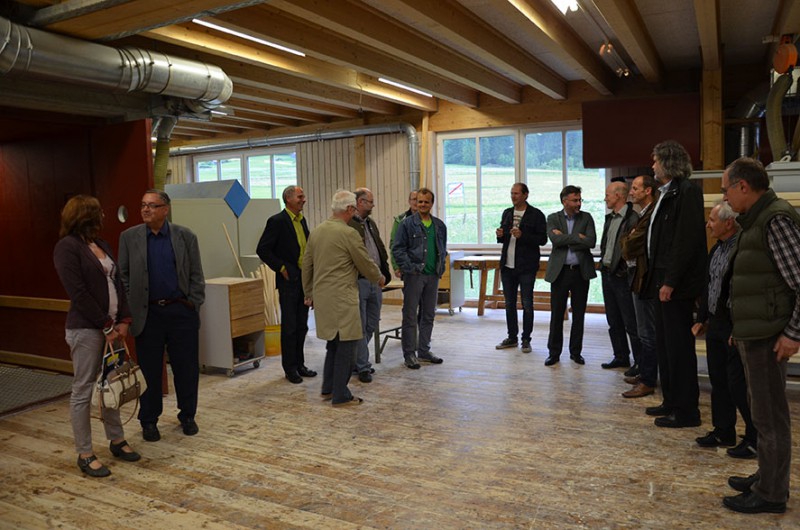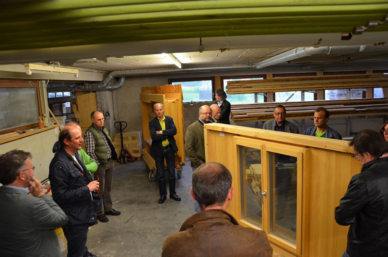 Zunächst diskutierte man eifrig über Technologien, Marktchancen und Vermarktungsaktivitäten, gesetzliche Rahmen- und Förderbedingungen für Holzfenster im stilvoll restaurierten Schoppernauer Gasthaus Adler. Anschließend lud Venstermacher Claus Schwarzmann zur Betriebsbesichtigung.