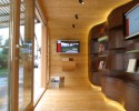 Welche Holzarten wurden verwendet und wie sind diese verarbeitet? Eingesetzt wurden Lärche und Akazie. Die Oberflächen sind geölt. Fenster- und Türrahmen bestehen ebenfalls aus geölter Lärche. Die am Möbel eingesetzte gedämpfte Akazie wurde lackiert. Die Außenhaut des Korpus wurde aus einer Kunststoffmembran gefertigt.