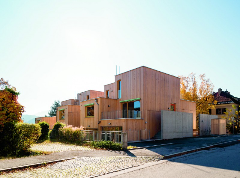 Auch den dritten Platz kann ein Innsbrucker Projekt für sich beanspruchen. Die Wohnanlage Kaspar Weyrer im Stadtteil Hötting. Der innovative Beitrag zum verdichteten Wohnungsbau, geplant von der ARGE Werner Burtscher und Patrick Lüth und ausgeführt vom Ortner Holzcenter aus Prutz, überzeugte die Jury. Das fertige Gebäude zeigt, dass trotz enormer konstruktiver und technischer Anforderungen im Mehrfamilienhausbau besonders mit Holzbau hohe architektonische Ansprüche erfüllt werden können.