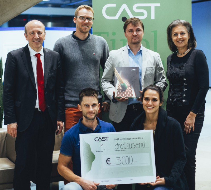 DI Roland Maderebner und sein Team Holzbaulehrstuhl an der Universität Innsbruck konnten die Jury des „CAST technology award 2015“ mit der Entwicklung des innovativen Verbindungsmittel „SPIDER CONNECTOR“ überzeugen und belegten Platz 1. „Mit diesem System für den Flachdeckenbau in Brettsperrholzbauweise wird ein richtungsweisender Schritt in einen noch leistungsfähigeren Holzbau gesetzt. Dies eröffnet dem Holzbau völlig neue Konstruktionsmethoden, die bisher nur im Betonbau möglich waren“, so Preisträger Maderebner.