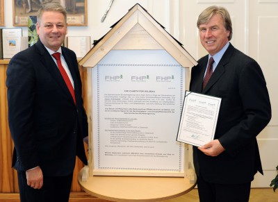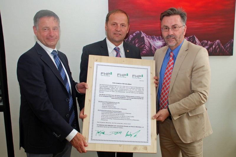 Bundesminister Andrä Rupprechter unterschrieb als erster die FHP- Charta für Holzbau und setzte damit ein sichtbares Zeichen für die Nachhaltigkeits- und Energieeffizienzpolitik Österreichs. Mit der Unterzeichnung der FHP-Charta wird ein klares Bekenntnis abgegeben, Holz im Wohnbau vermehrt einzusetzen. Alle sind eingeladen, durch ihr Voting diese Initiative zu unterstützen. Das Konjunkturpaket der österreichischen Bundesregierung sieht die Schaffung von 300.000 neuen Wohnungen vor.