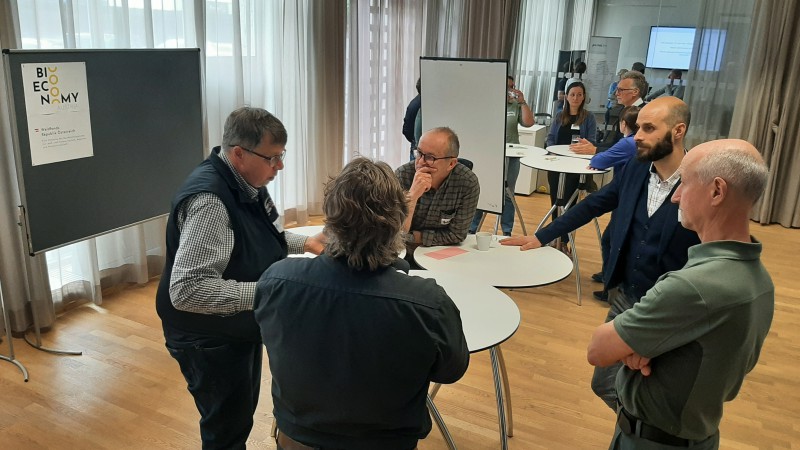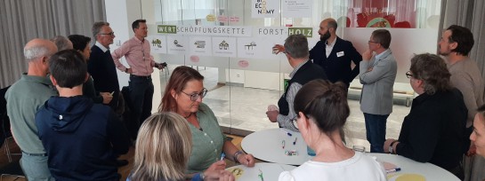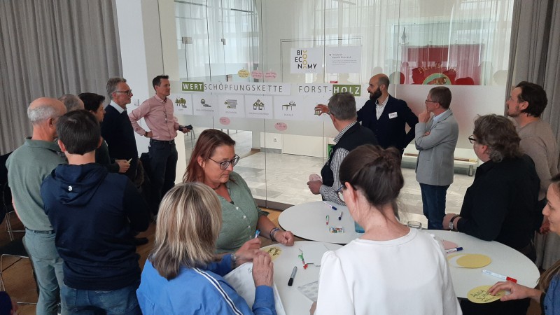 Mit dabei waren auch die Bioeconomy Austria-Projektpartner Thomas Timmel von BioBASE und Werner Balika von Innovation Salzburg, welche durch ihre Expertise wertvolle Erfahrungen aus anderen Branchen einbrachten. Durch eine Kombination von Gruppenarbeiten, Diskussionen im Plenum und kurzen Impulsvorträgen wurde der Workshop aufgelockert und die Kreativität gefördert. Die Ideen aus dem Workshop liefern nun die Grundlage für die weitere Bearbeitung des Themas „wertgerechte Holzverwendung“.