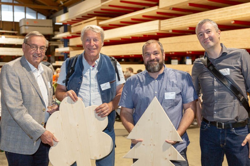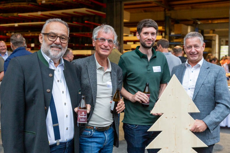 v.l.: Manfred Saurer (proHolz Tirol-Vorstandsvorsitzender), Thomas und Philipp Huter (Johann Huter u. Söhne) sowie Helmut Troger (proHolz Tirol-Vorstandsmitglied und Obmann Fachgruppe Holzindustrie Tirol) waren bestens gelaunt.