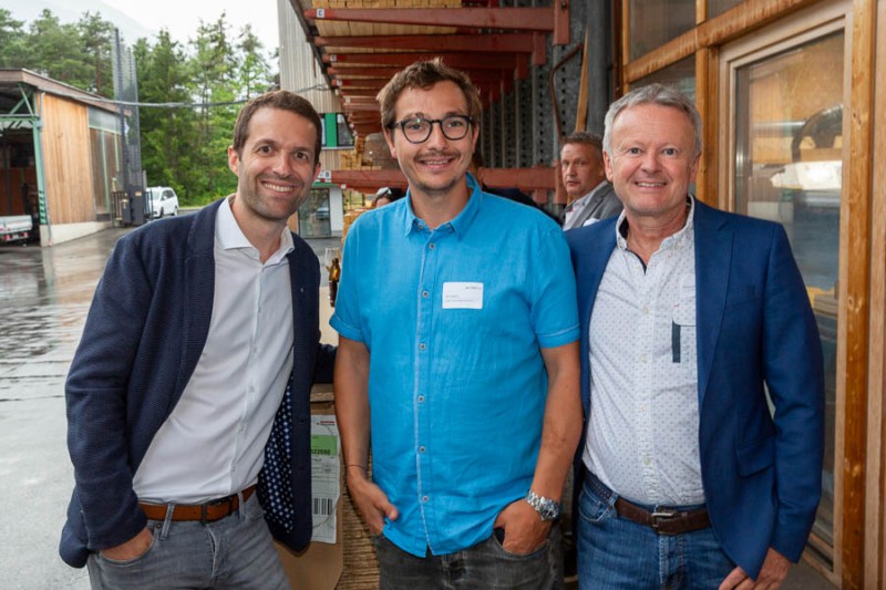 v. l.: Franz Binder (Binderholz GmbH), Sabine Eppacher (Dach+Fach Holzbau) und Rüdiger Lex (Geschäftsführer proHolz Tirol) beim Sommerfest.