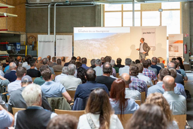 Rund 130 geladene Gäste folgten den spannenden Vorträgen in den Hallen von Holz-Marberger in Ötztal-Bahnhof.