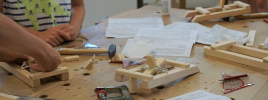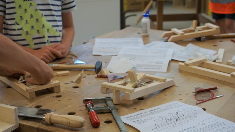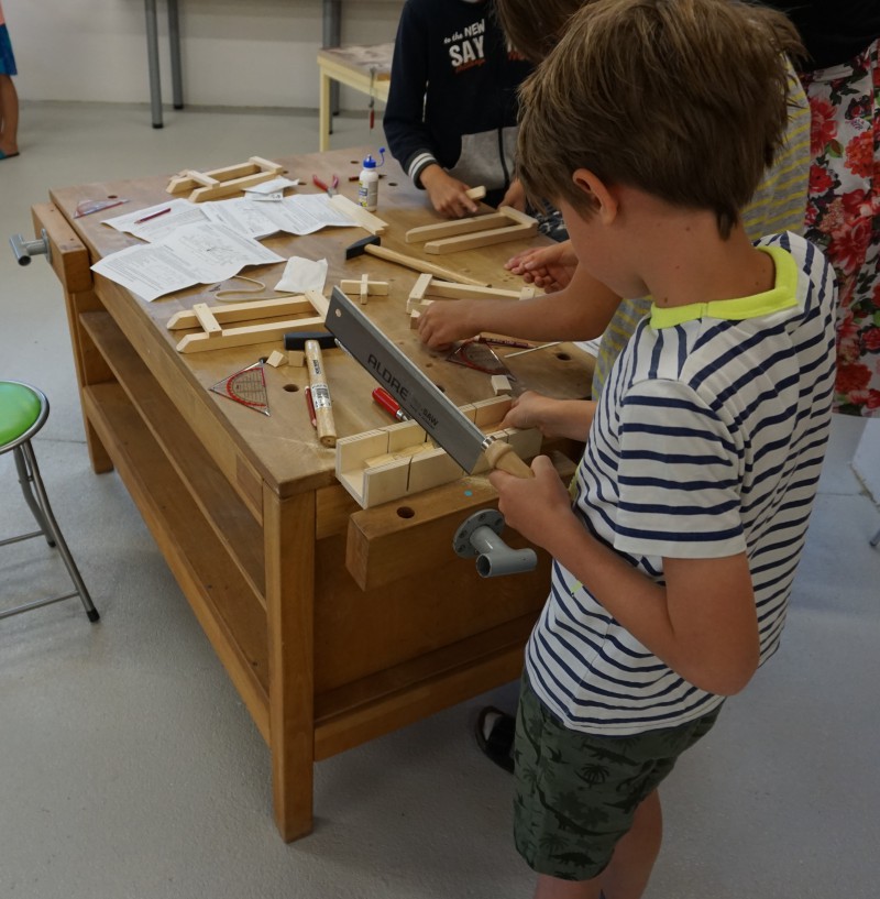 Die jungen Hortbesucher konnten ihre Kreativität und ihr handwerkliches Geschick erproben. Beim Holzworkshop wurde zum Beispiel geschliffen, gesägt und gehämmert. Am Ende des Tages konnten die Kinder ihr klei-nes, selbstgebautes Holzboot noch im Hort testen und dann mit nach Hause nehmen. Aber auch das Wissen kam nicht zu kurz: nebenbei wur-den spielerisch Fragen zu Festigkeit, Nachhaltigkeit und zum Material-einsatz thematisiert.