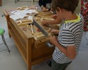 Mit großer Begeisterung und Geschicklichkeit sind die Kinder beim „Werkeln“ und bauen ein Holzboot.