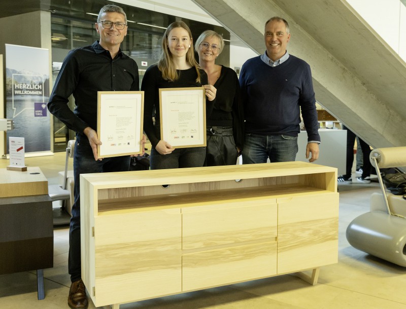Die Landesinnung der Tischler und Holzgestalter sowie proHolz Tirol forcieren gemeinsam mit den Fachberufsschulen das Thema „Gestaltung und Design“ in der Tischlerausbildung. Bereits zum vierten Mal wurde hierzu nun ein Gestaltungspreis ausgelobt. Anfang März 2023 wurde in der Hypo Tirol Bank am Bozner Platz in Innsbruck im Beisein von Landeshauptmann-Stellvertreter ÖR Josef Geisler und dem Vizepräsidenten der Wirtschaftskammer Tirol Martin Wetscher die Preisverleihung vorgenommen.