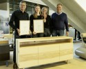 Laura Außerhofer (2. v. l.) wurde mit ihrem Gesellenstück mit einer Nominierung in der Kategorie Tischler belohnt. (v.l.) Robert Kleissl (Ausbildner Tischlerei Lüth), Mutter Elisabeth Außerhofer und Hans Hampl (Tischlerei Lüth) sind sichtlich stolz auf die junge Gesellin.