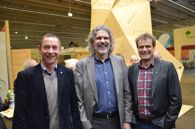 Bild 4 (v.l.): KommR DI Helmuth Fritz, DI Roland Maderebner (Holzbaulehrstuhl) und DI Thomas Huter (Huter & Söhne)
