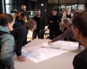 Start der Tour war die Kulturbackstube. Dort stellte Architekt Thomas Thun die Aufstockung in Holzbauweise vor. Er betonte die logistischen Herausforderungen solcher Vorhaben in dicht bebauten Stadtteilen, die durch Verwendung von Holz am besten zu lösen sind: Leichtigkeit und kurze Bauzeiten zeichnen Holz dabei aus.