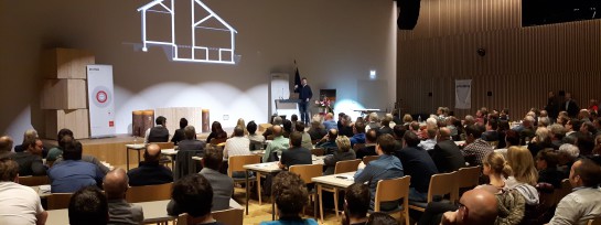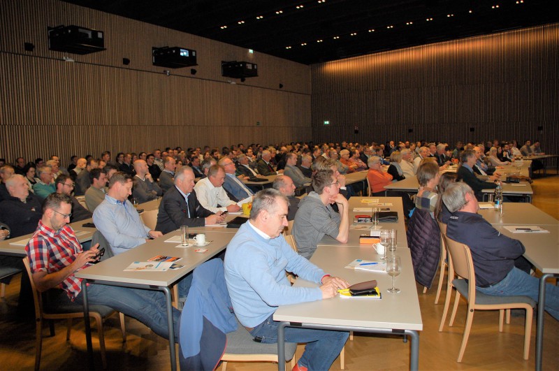 Bild 2: Über 250 Zuhörern sorgten für einen vollen Saal und lauschten aufmerksam den Ausführungen des Referenten Architekt und Zimmermann Univ.-Prof. Dipl. Ing. Florian Nagler aus München.