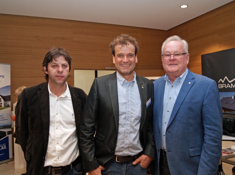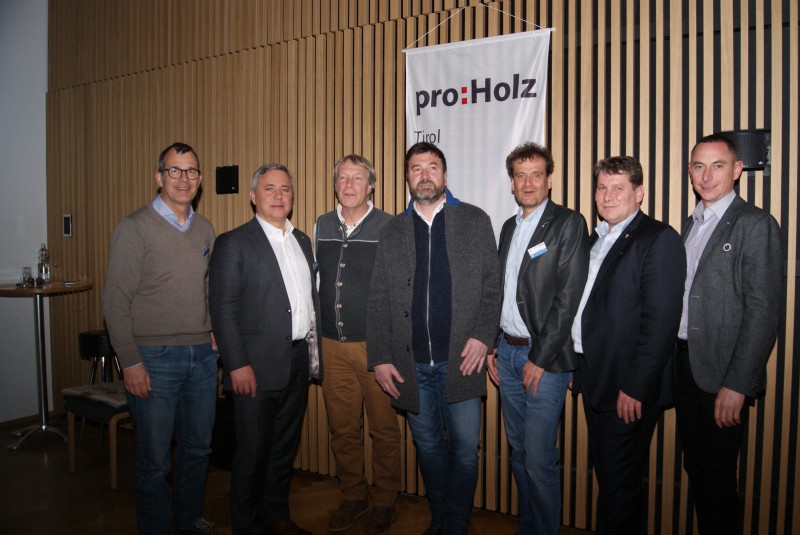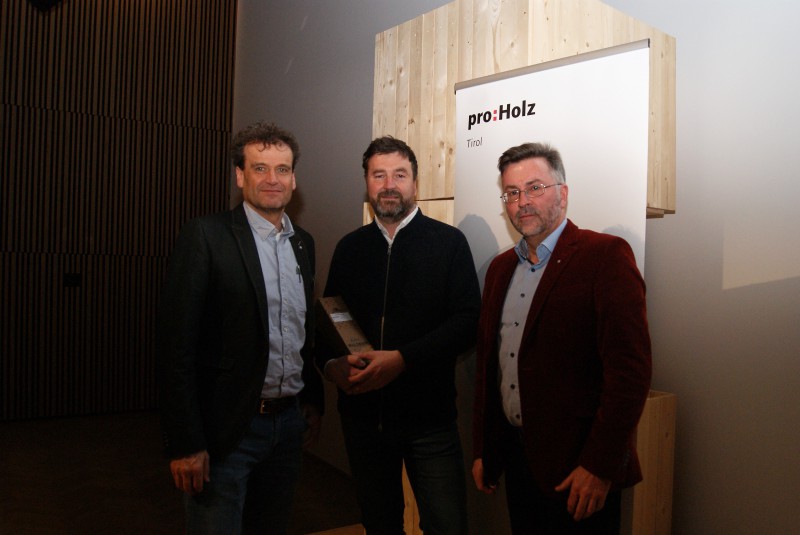 Bild 1: proHolz Vorstandsvorsitzender Karl Schaffer mit dem Vortragenden Univ.-Prof. Dipl. Ing. Florian Nagler und proHolz Tirol Geschäftsführer DI Rüdiger Lex.