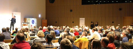 Rund 250 interessierte Personen füllten den Saal und lauschten den Ausführungen des Architekten DI Reinhard Kropf