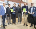assoz. Prof. DI Andreas Flora (l.) und Arch. DI Thomas Thaler (2.v.l.) sind vom Projekt „zamm“ begeistert. Die Preisträger sind sichtlich stolz auf die dafür erhaltene Auszeichnung.