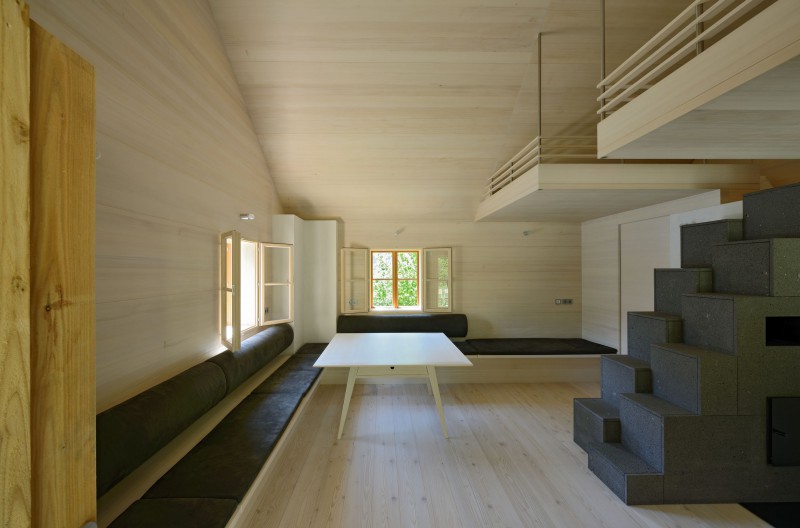 Die Sanierung des Kramerstadels in Obertraun gilt als zeitgemäßes, funktionstüchtiges Gesamtensemble im Einklang oder Kontrast zum übrigen Umfeld. Der Innenausbau wurde mit weiß geölter Tanne gestaltet.