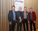 proHolz Tirol-Vorstandsvorsitzender Karl Schafferer mit dem Vortragenden Architekten Franz Josef Maul, dem Landesinnungsmeister Holzbau Simon Kathrein und proHolz Tirol GF DI Rüdiger Lex